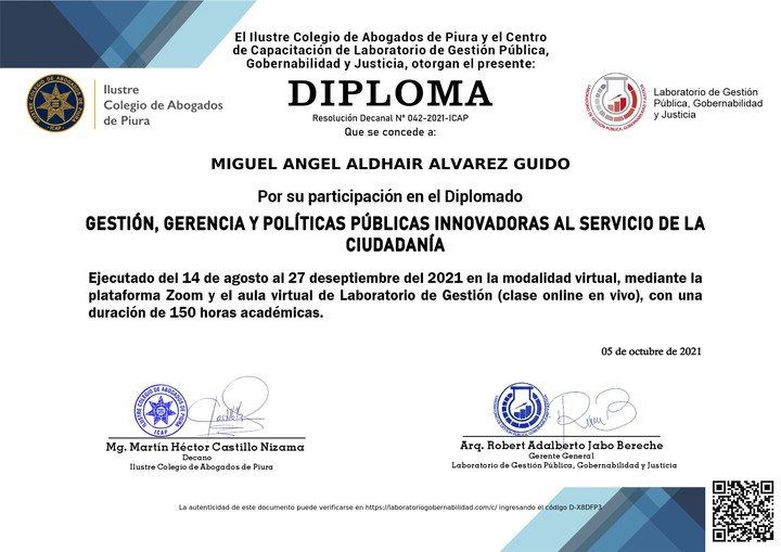 DIPLOMADO: GESTIÓN, GERENCIA Y POLÍTICAS PÚBLICAS INNOVADORAS AL SERVICIO DE LA CIUDADANÍA