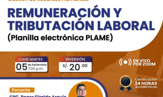 Curso Especializado en Gestión de Recursos Humanos: REMUNERACIÓN Y TRIBUTACIÓN LABORAL (Planilla electrónica PLAME)