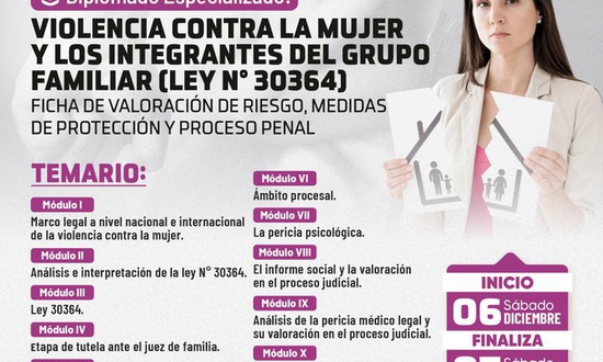 Diplomado Especializado: VIOLENCIA CONTRA LA MUJER Y LOS INTEGRANTES DEL GRUPO FAMILIAR (LEY N° 30364) FICHA DE VALORACIÓN DE RIESGO, MEDIDAS DE PROTECCIÓN Y PROCESO PENAL