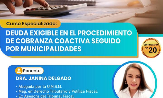 Curso Especializado: DEUDA EXIGIBLE EN EL PROCEDIMIENTO DE COBRANZA COACTIVA SEGUIDO POR MUNICIPALIDADES