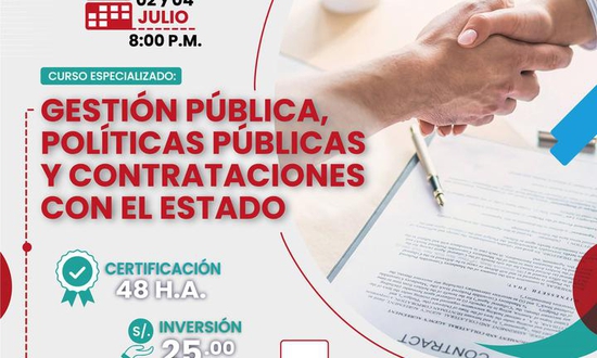 Curso Especializado: GESTIÓN PÚBLICA, POLÍTICAS PÚBLICAS Y CONTRATACIONES CON EL ESTADO