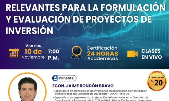 Curso Especializado: IOARR Y OTRAS CONSIDERACIONES RELEVANTES PARA LA FORMULACIÓN Y EVALUACIÓN DE PROYECTOS DE INVERSIÓN