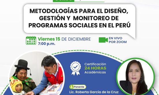 Curso Especializado: METODOLOGÍAS PARA EL DISEÑO, GESTIÓN Y MONITOREO DE PROGRAMAS SOCIALES EN EL PERÚ