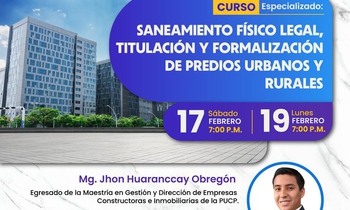 Curso Especializado: SANEAMIENTO FÍSICO LEGAL, TITULACIÓN Y FORMALIZACIÓN DE PREDIOS URBANOS Y RURALES